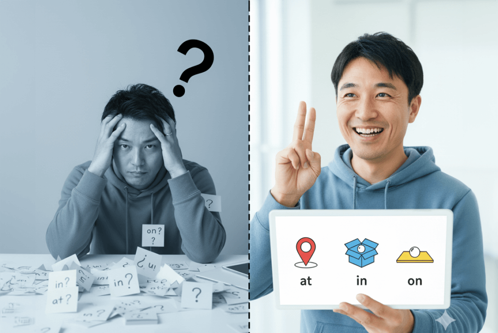 英語の前置詞、特に “in” “on” “at” の使い分けで、もう迷うのは終わりにしませんか? 多くの学習者がつまずく前置詞ですが、実は日本語訳を一つひとつ丸暗記する必要はありません。この記事で紹介する、ネイティブが持つ「コアイメージ」で前置詞を捉える学習法を実践すれば、応用力が劇的に向上し、直感的に正しい前置詞を選べるようになります。この記事を読めば、あなたもネイティブ感覚への第一歩を踏み出せるはずです。