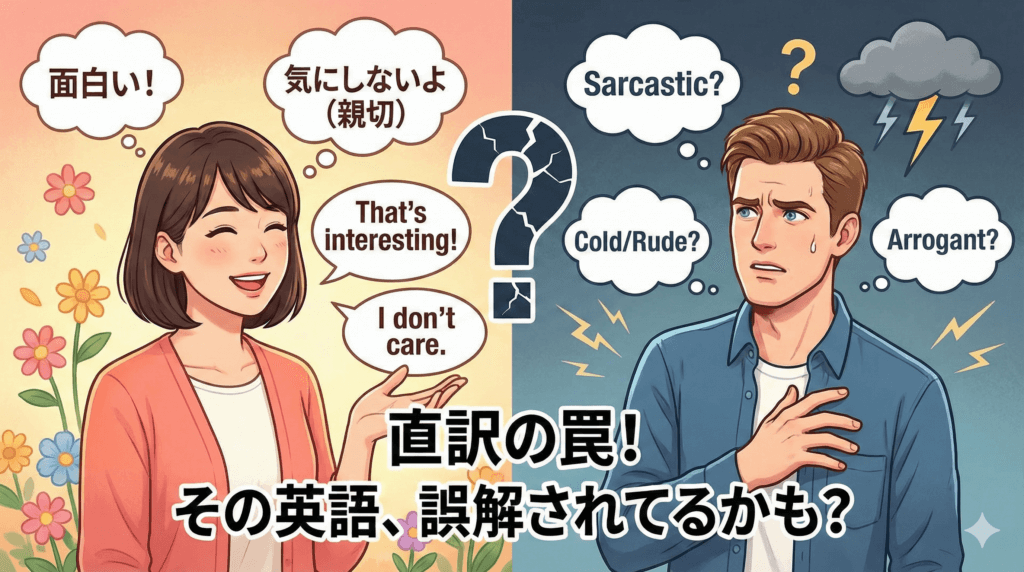 「褒めたつもりなのに、微妙な顔をされた」「同意したつもりなのに、空気が凍った」。そんな経験はありませんか?今回は、メインキーワードである「英語 ニュアンス 勘違い」をテーマに、日本人が頻繁に使う「Interesting 意味」、「I don’t care 違い」、「I know I see 違い」といった、誤解を生みやすい危険なフレーズを特集します。